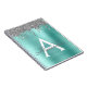 Caderno Espiral Monograma com Nome e Inicial em Metal Escovado com Brilho Metálico Falso Azul Água Teal e Prata. Isso torna o presente perfeito para aniversário de 16 anos, casamento, chá de noiva, aniversário de casamento, chá de bebê ou festa de despedida de solteira para alguém que ama luxo glamoroso e estilos chiques.
