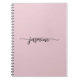 Caderno espiral de roteiro de assinatura feminina com monograma moderno e simples em rosa pó poeira. Este design minimalista de cor simples apresenta seu primeiro nome em uma linda tipografia de letra manuscrita com cauda swash e fácil de personalizar. Ótimo presente personalizado para festa de aniversário, casamento, chá de noiva, festa de aniversário de 16 anos, chá de bebê e para quem ama estilo minimalista.