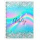 Caderno Espiral Monograma de Ondas de Onda Arco-Íris de Prata