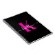 Este simples e elegante notebook espiral preto 6.5 x 8.75 com seu primeiro nome em uma letra de script de tendência em branco digitado sobre sua primeira letra de boné moderno em rosa-quente é perfeito para você. É na moda e moda e, no entanto, muito clássico. Será útil em tantas situações. Perfeito para o trabalho, casa, escola, jornalismo.