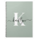 Caderno Espiral Monograma de Script Verde do Moderno Sage