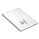 Caderno Espiral Monograma de Script Vermelho Branco Moderno Elegan