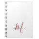 Notebook Elegante Modern White Red Script Monograma. Um monograma elegante de script vermelho combinado com uma fonte limpa de san-serif preta faz uma aparência contemporânea.