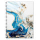 Caderno Espiral Monograma do mármore Dourado branco abstrato azul