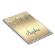 Nome personalizado do monograma ou brilho inicial de dourado escorrendo e faíscas. Um caderno de chic brilhante, feminino, para fazer anotações na escola, na faculdade, no trabalho, na lição de casa ou como diário. Fácil de personalizar para mudar de fonte e/ou cor com o botão personalizar, e faz um presente perfeito para chá de panela, convidado de casamento, doce aniversário de 16 anos, aniversário ou presente de festa de solteira.