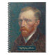 Fonte de tipografia personalizada, simples, estilosa, bonita, elegante em falso ouro, caderno espiral com uma pintura detalhada e intrincada de autorretrato em óleo vintage sobre tela de artista, por Vincent van Gogh, para amantes de arte refinada / obra-prima / arte clássica e conhecedores de Van Gogh. Para personalizar, basta digitar seu nome / monograma / iniciais. Ótimo para casa, escritório, negócios, escola, faculdade, universidade. Faz um presente personalizado maravilhoso para seus entes queridos, filhos, filho, filha, sobrinha, sobrinho, mãe, pai, marido, esposa, irmão, irmã, noiva, noivo, avô, avó, artista, pintor, familiares e amigos, para ano novo, aniversário, natal, feriados, formatura, planejamento de casamento e muito mais.