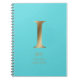 Caderno Espiral Monograma Dourado Personalizado | Turquesa