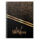 Caderno Espiral Monograma elegante simples Preto e brilho Dourado