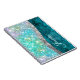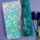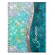 Caderno Espiral Monograma falso cintilante turquesa iridescente fo