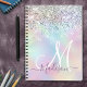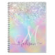 Caderno Espiral Monograma faux glitter monograma simples iridescen