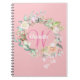 Bonito caderno de monograma inicial cor-de-rosa, com um belo nome de escrita branca com uma inicial cor-de-rosa elogiante, que é enquadrado por uma delicada camada de rosa floral de cor-de-água sobre um fundo cor-de-rosa pêssego. Personalizar para criar um presente especial para o tesouro! Projetado por Thisnotme©