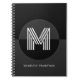 Caderno de Monograma Geométrico Moderno Preto Branco Cinza Chic