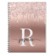 Caderno Personalizado Moderno Glam Elegante Feminino com Brilho em Rosa Dourado e Gotejamento de Glitter Metálico com Monograma Inicial do Nome em Letra Personalizada. Este design apresenta seu primeiro nome em uma linda tipografia de letra manuscrita com cauda swash (ou caligrafia), monograma inicial em folha metálica ombre falsa cor-de-rosa dourada com brilho glamouroso e borda gotejante de glitter. São fáceis de personalizar e podem ser usados como Livro de Receitas, Diário Pessoal, Caderno de Desenho, Revista e mais. Também é um presente feminino elegante para aniversário, dia das mães, casamento, chá de noiva, festa de 16 anos, e chá de bebê, negócios, formatura, volta às aulas, trabalho profissional e para qualquer pessoa que ama estilo glamoroso e chique.