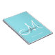 Caderno personalizado moderno e feminino, azul claro e branco com monograma em espiral. Este design simples e elegante apresenta um nome em letra cursiva com floreios em cinza e um grande monograma em branco sobre fundo azul claro, aqua ou turquesa claro. Este caderno feminino e bonito é uma ideia de presente perfeita para negócios, profissional, escola, festa de aniversário, casamento e qualquer festa ou ocasião para alguém que gosta de estilos femininos e modernos. Se precisar de ajuda ou de item correspondente, por favor entre em contato com o designer.