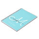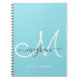Caderno personalizado moderno e elegante, com capa em azul claro e branco, com monograma espiral. Este design simples e elegante apresenta um nome em letra cursiva com floreios em cinza e um grande monograma em branco sobre fundo azul claro, aqua ou turquesa claro. Este caderno feminino e bonito é uma ideia de presente perfeita para negócios, profissional, escola, festa de aniversário, casamento e qualquer festa ou ocasião para alguém que gosta de estilos femininos e modernos. Se precisar de ajuda ou de item correspondente, por favor entre em contato com o designer.