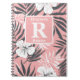 Caderno Espiral Monograma personalizado de hibisco rosa tropical
