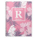 Caderno Espiral Monograma personalizado de hibisco rosa tropical