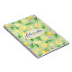 Um caderno espiral de nome personalizado com limões pintados de cor d'água brilhante e felizes com padrão de flores em fundo verde, basta mudar o nome.