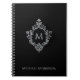 Caderno Espiral Monograma preto Faux prata prateado preto Elegante