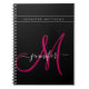 Caderno Espiral Monograma Preto Rosa de Script Elegante Personaliz