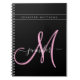 Caderno Espiral Monograma preto rosa personalizado com script Eleg