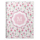Caderno Espiral Monograma Rosas Rosa Românticas Bonito Padrão
