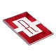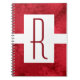 Um olhar clássico com um toque moderno. Um dentro de monograma vermelho, um retângulo branco contra um fundo vermelho escondido.