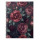Caderno Espiral Moody Florals Watercolor Dark Red Pattern