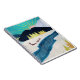 Uma paisagem digital com cores brilhantes e texturas mostrando um cogumelo com uma equipe de trenó de cão e um sol cor-de-rosa brilhante em tons de azul, ouro, ciano e amarelo.