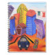 Uma pintura colorida, divertida e imaginativa representando alguém em um carro deixando uma cidade com prédios tortos.