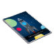 Céu escuro do espaço da noite com os planetas coloridos e brilhantes e as estrelas brancas, com um vôo de prata do navio do foguete através do céu. Excelente para uma sala dos rapazes pequenos para a cara que ama o espaço e o viagem. Todo o © de Copyright do design www.CuteComfy.com 2012