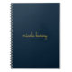 Caderno Espiral Navy Blue Gold Script | Stylish Monogram Modern