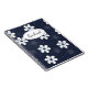 Pretty navy blue and white modern floral pattern on personalised notebook.