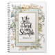 Notebook inspiracional de citações, diário retrata um design floral de aquarela de jardim rústico com flores brancas, eucalipto e folhas azuis. Ele apresenta uma Bíblia encorajadora Verse Nehemiah 8:10, "A alegria do senhor é minha força."_