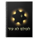 For Yom HaShoah, Holocaust Remembrance Day. A black and yellow fractal image recalling the yellow "Star of David" which the Nazis required Jews to wear during the Holocaust. Hebrew text reading, "Le Olam Lo Od" (Never Again) also appears. Never forget; never let it happen again.