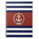 Caderno Espiral Nó branco/Marinho/faixa vermelha/branca