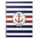 Caderno Espiral Nó/Marinho vermelho náutico/faixa azul/branca
