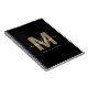 Caderno Personalizado com Monograma de Nome em Letra Moderna Preta e Dourada. Este caderno sofisticado é projetado com um toque elegante e estiloso, apresentando uma inicial dourada plana (sem brilho ou folha) centralizada em um fundo preto elegante. Um nome em letra cursiva branca sobrepõe a inicial em caligrafia elegante, com o nome completo impresso abaixo em uma fonte moderna e limpa para adicionar um acabamento pessoal e sofisticado. Perfeito para uso comercial no escritório, para a escola - seja ensino fundamental, médio ou superior - ou apenas para se manter organizado com estilo, este caderno funciona lindamente como um presente único e atencioso para feriados, aniversários, Dia das Mães ou qualquer ocasião especial. É uma escolha prática, mas luxuosa, que combina elegância com funcionalidade, ideal para quem aprecia um toque refinado e personalizado em seus itens essenciais do dia a dia.