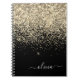 Planejador de Notebook Espiral de Nome de Monograma de Script Glitter Preto e Dourado. Isto faz o doce e perfeito aniversário de 16 anos, casamento, chá de panela, aniversário, chá de fraldas ou festa de solteira presente para alguém que ama luxo de luxo e estilos quíticos.