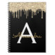 Caderno Espiral com Nome e Inicial em Monograma de Brilho Dourado e Preto. Isso torna o presente perfeito para o aniversário de 16 anos, casamento, chá de noiva, aniversário de casamento, chá de bebê ou festa de despedida de solteira para alguém que ama glamour luxuoso e estilos chiques.