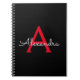 Planejador de Notebook Espiral de Nome de Monograma Simples Preto e Vermelho. Isto faz o doce e perfeito aniversário de 16 anos, casamento, chá de panela, aniversário, chá de fraldas ou festa de solteira presente para alguém que ama luxo de luxo e estilos quíticos.