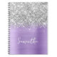 Caderno Espiral Nome do Script Glam de Lavanda do Silver Glitter