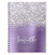 Caderno Espiral Nome do Script Glam Roxo Púrpura da Silver Glitter