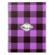 Orquídea Preto Tartan Metálico Monograma Monográfico Nome do notebook Tendy, moderno e na moda personalizável apresenta "nome personalizado & monograma" em um crachá de aço metálico e orquídea / fundo preto. Personalize este lindo notebook como um presente maravilhoso para seu professor, amigo ou qualquer membro da sua família, adicionando seu nome ou texto / mudando a fonte, a cor, o tamanho e a posição.