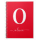 Caderno Espiral Nome do Script Monograma Personalizado Vermelho e