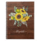 Caderno Espiral Nome Monograma Girassol Rústico em Madeira Foto