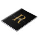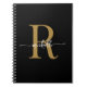 Caderno Espiral de Monograma Inicial Preto e Dourado Moderno, Simples e Elegante com Nome Feminino. Este design minimalista de cor lisa apresenta seu primeiro nome em uma linda tipografia de letra manuscrita com floreios (ou caligrafia), modelo de monograma inicial, fácil de personalizar. Ótimo presente personalizado e feminino para festa de aniversário, inauguração, casamento, festa de aniversário de 16 anos, chá de noiva, chá de bebê e para quem ama um estilo minimalista charmoso.