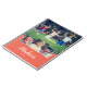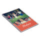 Um presente personalizado exclusivo com 4 fotos favoritas em um notebook moderno de colagem de fotos com seu nome em um roteiro escrito à mão e ano abaixo em um pano de fundo laranja. Um doce presente pessoal para adolescentes, crianças ou avós!