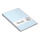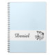 O caderno de nomes personalizado é mostrado em uma cor azul-claro com uma fita de destaque com uma pomba de batismo e um nome de amostra. Personalize este item e altere o nome para o seu.