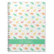 Bloco de anotações de padrão do Dinossauro Azul Verde Nome personalizado. Escolha Tamanho e término no menu Opções.